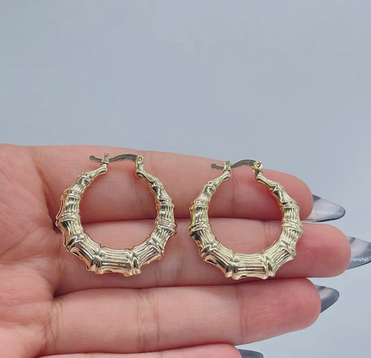 18k Gold Filled Textured Bamboo Hoops