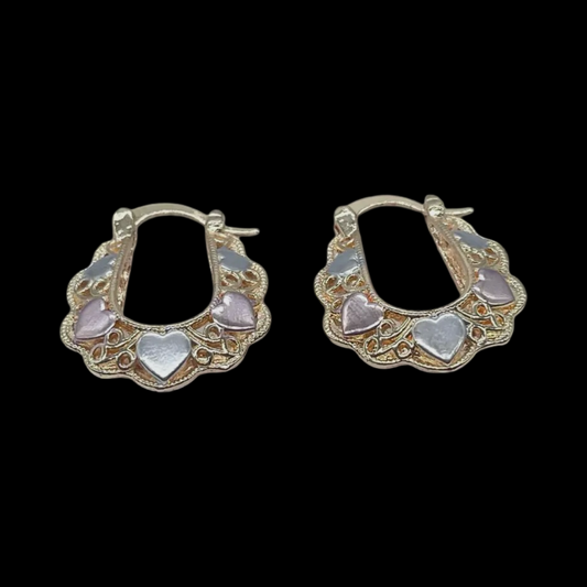 18k Gold Filled Tri-Colored Heart Earrings