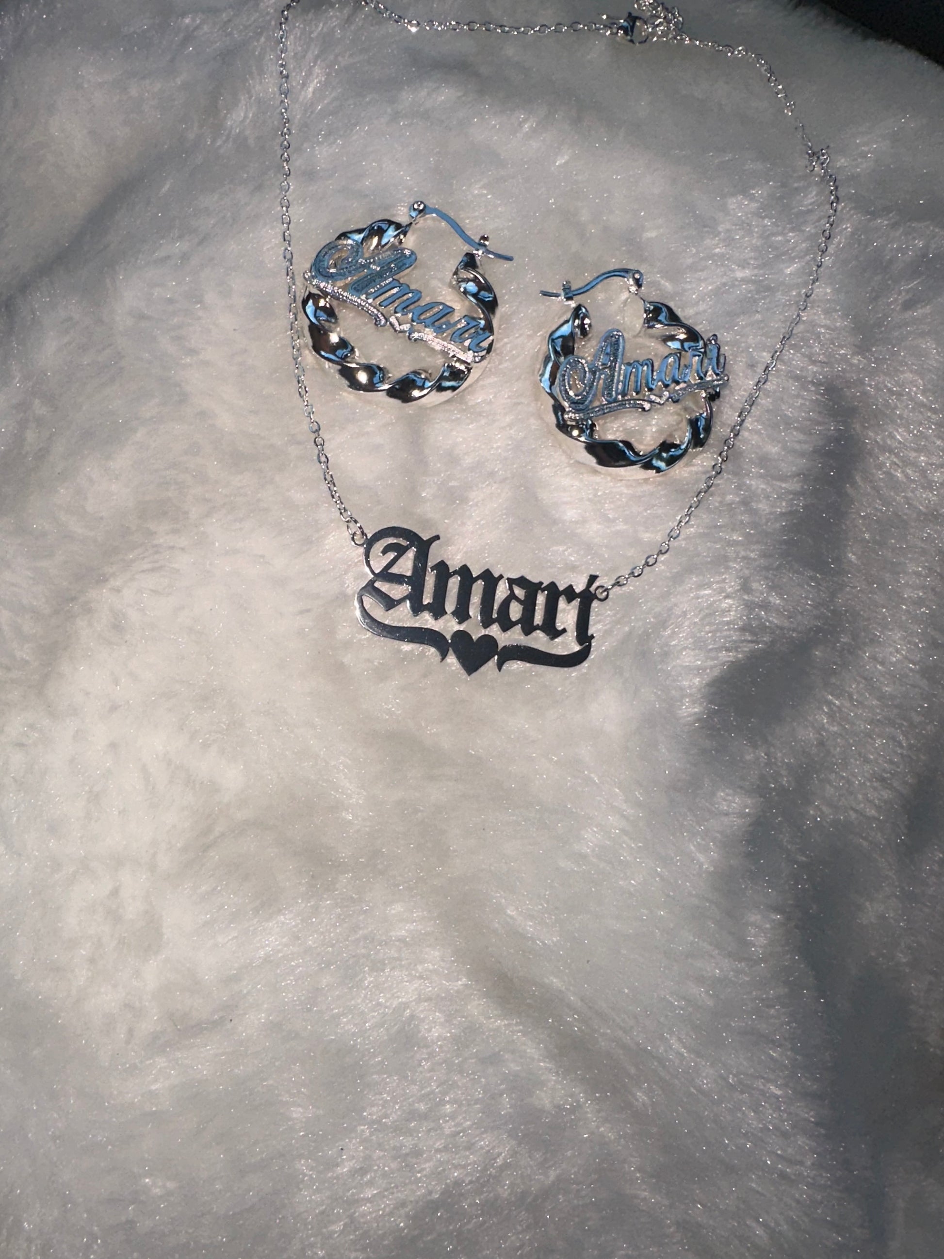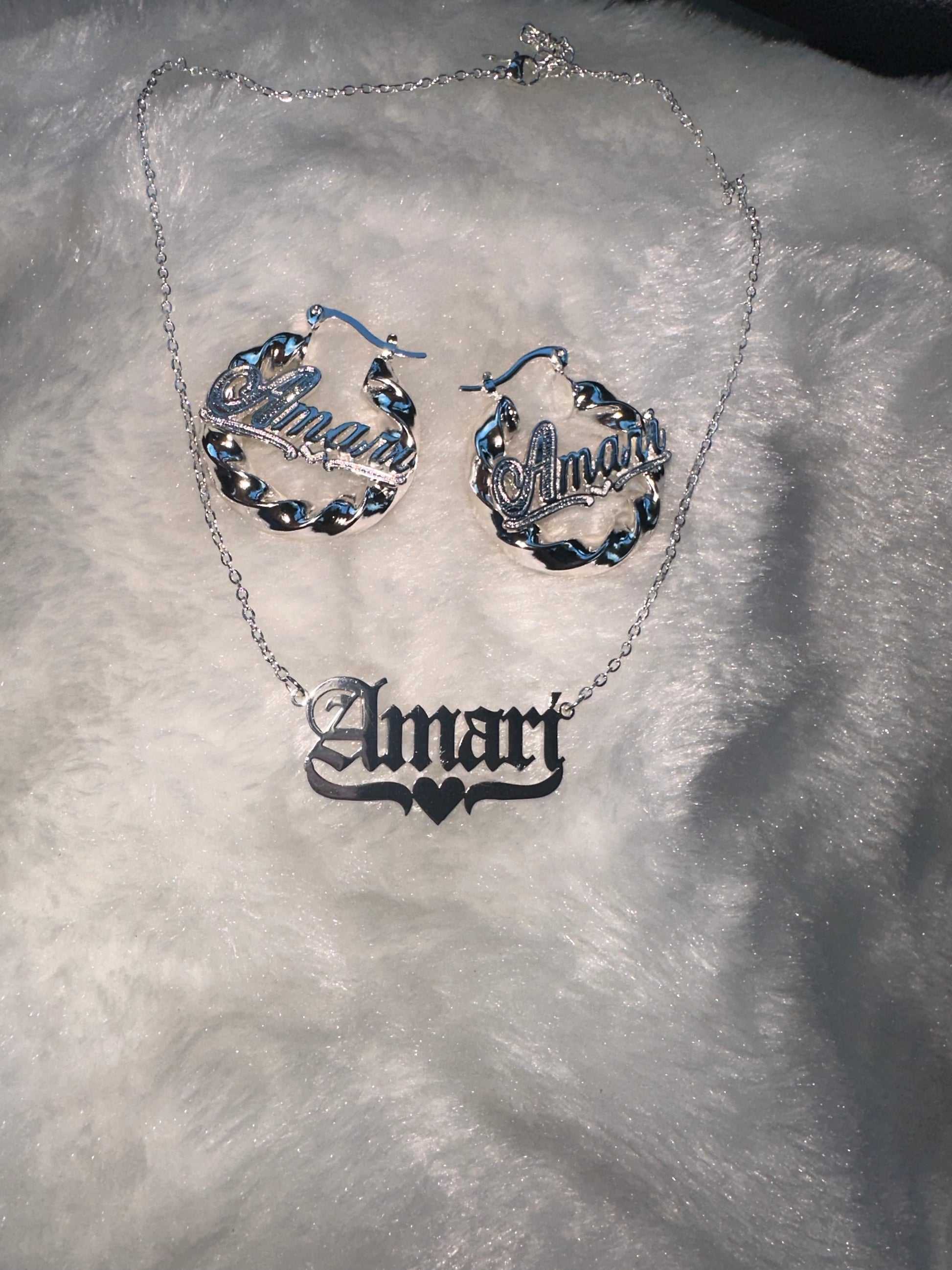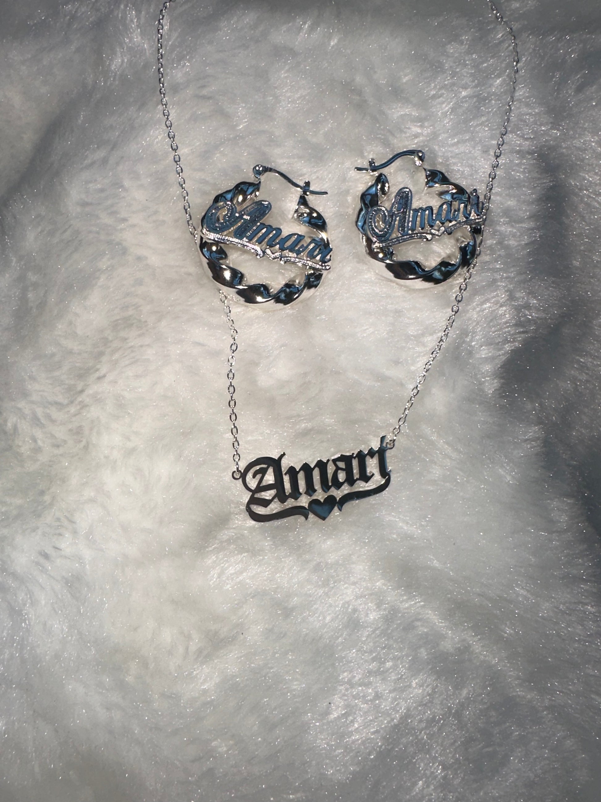 Our size 30mm hoop earrings with Our Verana style custom name necklace.